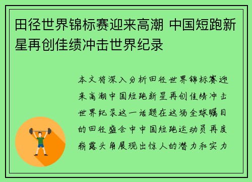 本文将深入分析“田径世界锦标赛迎来高潮,...