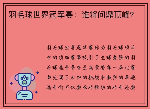 羽毛球世界冠军赛作为羽毛球项目中的顶级赛...