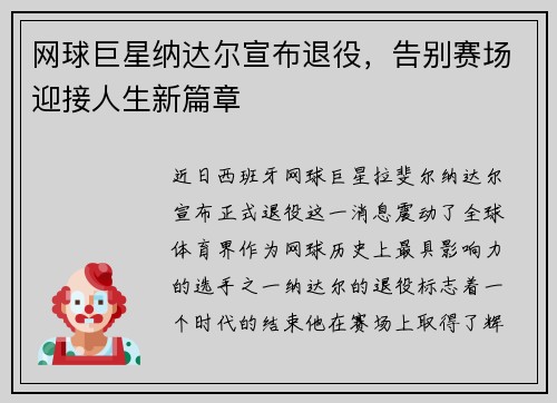 近日,西班牙网球巨星拉斐尔·纳达尔宣布正...