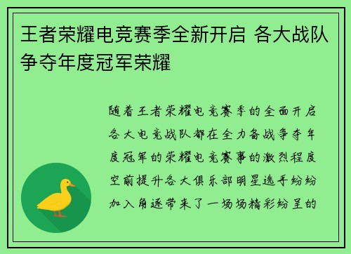 随着王者荣耀电竞赛季的全面开启,各大电竞...