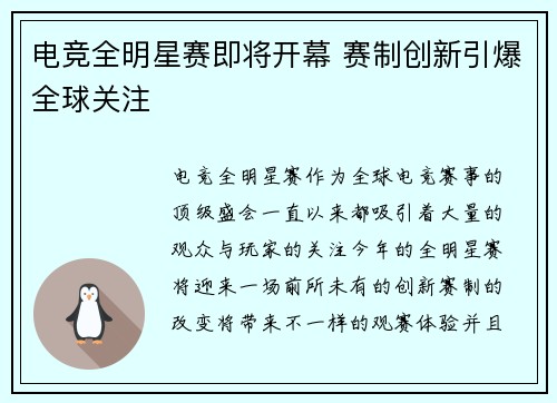 电竞全明星赛作为全球电竞赛事的顶级盛会,...