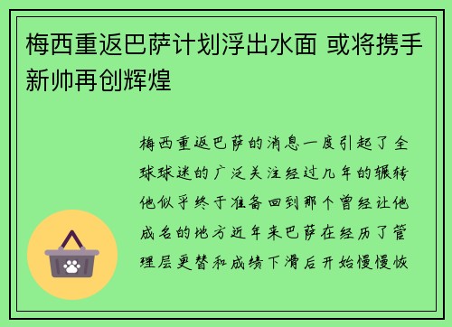 梅西重返巴萨的消息一度引起了全球球迷的广...