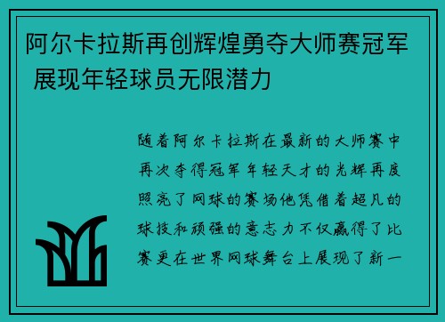 随着阿尔卡拉斯在最新的大师赛中再次夺得冠...