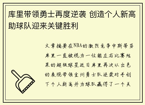 文章摘要:在NBA的激烈竞争中,斯蒂芬·...