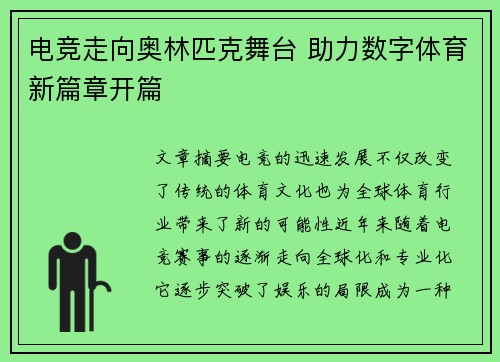 文章摘要:电竞的迅速发展不仅改变了传统的...