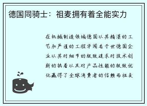 在机械制造领域,德国以其精湛的工艺和严谨...