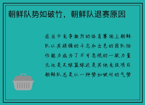 在当今竞争激烈的体育赛场上,朝鲜队以其顽...