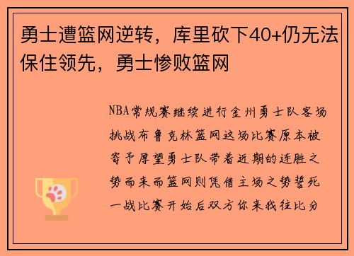 NBA常规赛继续进行,金州勇士队客场挑战...